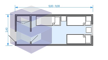 Площадь учреждения можно расширить/сузить путем добавления/удаления отдельных модулей. Также возможно изменение планировки здания без проведения существенных строительных работ.